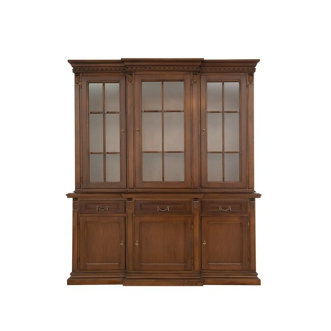 Bufet Vitrină 3 Uși Diana, fronturi cu sticlă, masiv fag + panel + MDF furniruit nuc, 188x58x140 h cm, finisaj la alegere