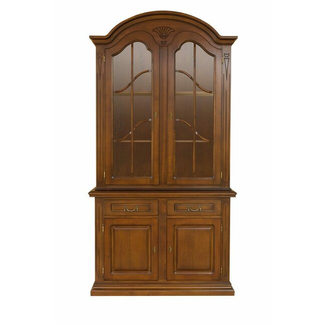 Vitrină Mara cu 2 uși din lemn masiv fag, panel și MDF, furniruită cu furnir de nuc, 122x54x140 cm