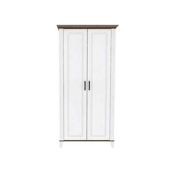 Dulap Skandi 2D, design modern, 2 uși, balamale soft-close, structură MDF + PAL, finisaj texturat, 220x53x100 cm, Alb / Stejar Burbon