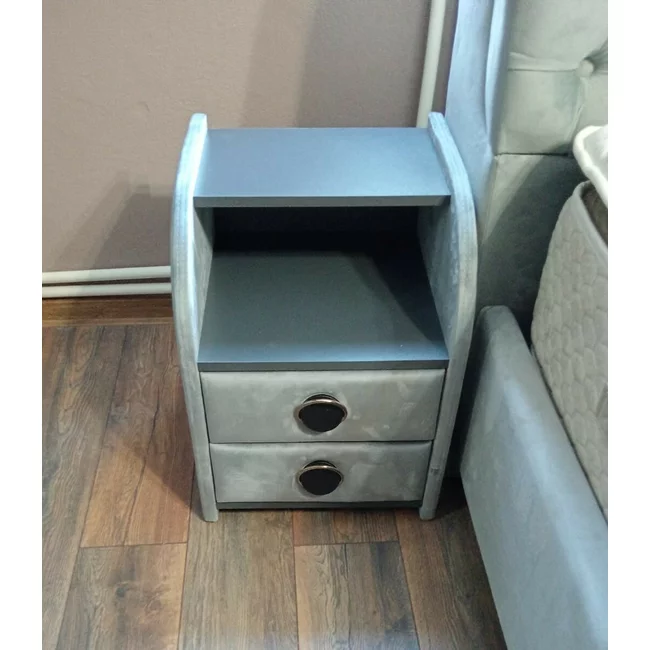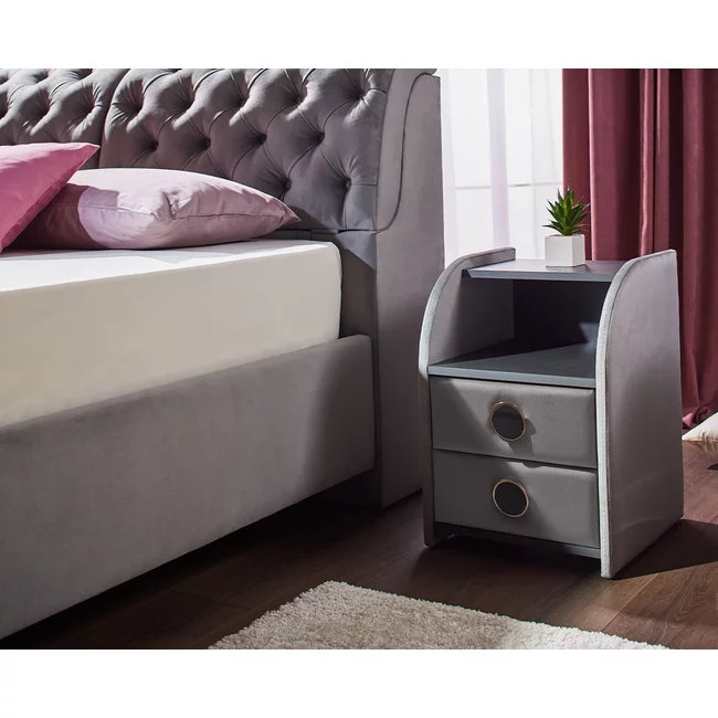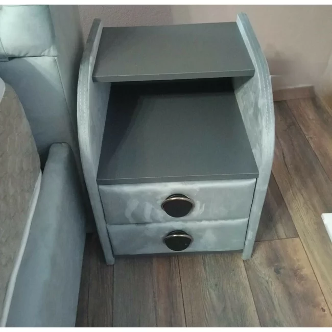 Noptieră Frankfurt, cu 2 sertare, tapițată stofă, PAL melaminat, 42x58x41 cm, gri