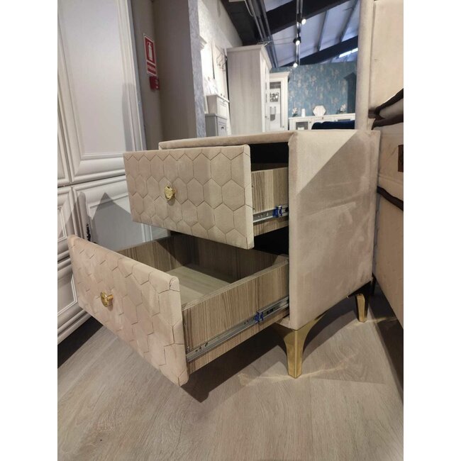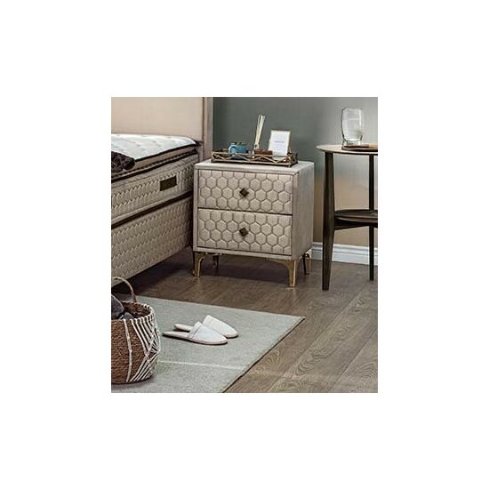 Noptieră Peter cu sertare, catifea premium, 53x40x60 cm, crem