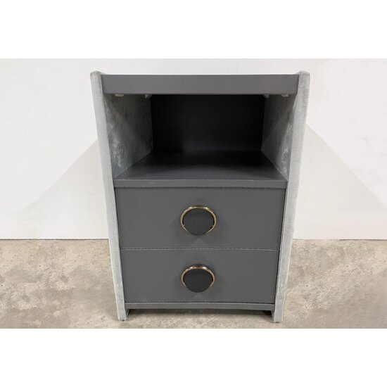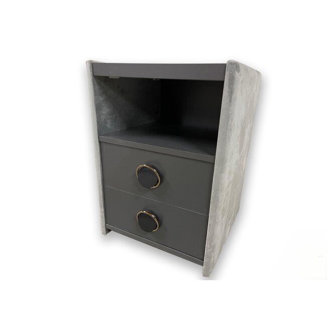 Noptieră Samba, cu 2 sertare, tapițată catifea, 42x41x58 cm, gri