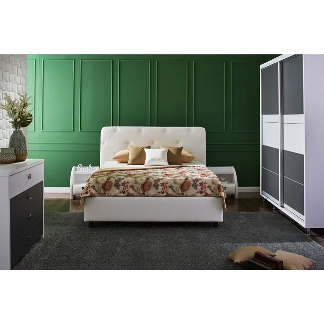 Pat Cristal cu piele ecologică și somieră rabatabilă, piele ecologică, 140x200 cm, alb