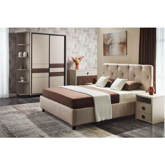 Pat Cristal cu stofă catifelată și spațiu depozitare, stofă, 140x200 cm, bej