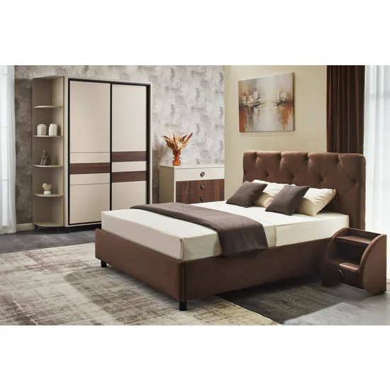 Pat Cristal cu ladă de depozitare și somieră rabatabilă, stofă, 160x200 cm, wenge