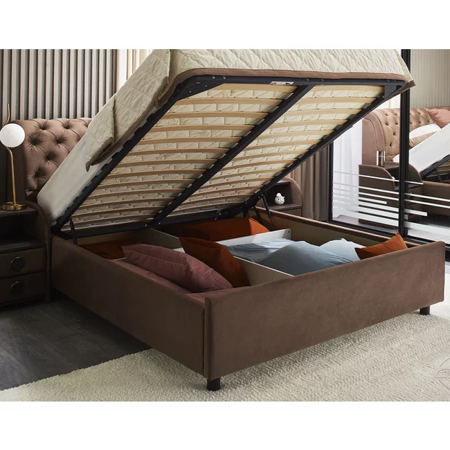 Somiera rabatabilă cu pompe de aer comprimat de 1200N oferă acces la spațiul de depozitare de sub saltea.