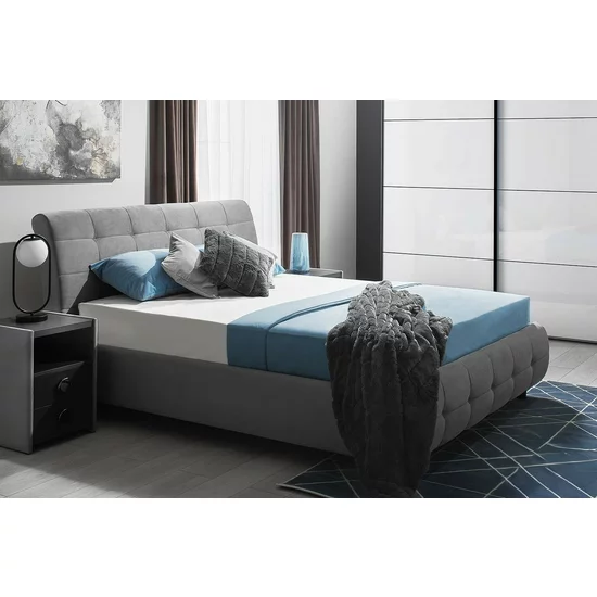 Pat modern din clasa premium, pat elegant, cu spatar moale capitonat cu stofă plușată plăcută la atingere. Dispune de spatiu de depozitare sub saltea, mecanism de ridicare somieră inclus în preț, laterale moi. Ușor de combinat cu întreaga paleta coloristică.