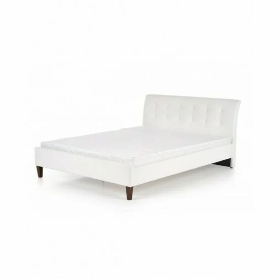 Pat Samara, stil elegant, piele ecologică și lemn masiv, 160x200 cm, alb