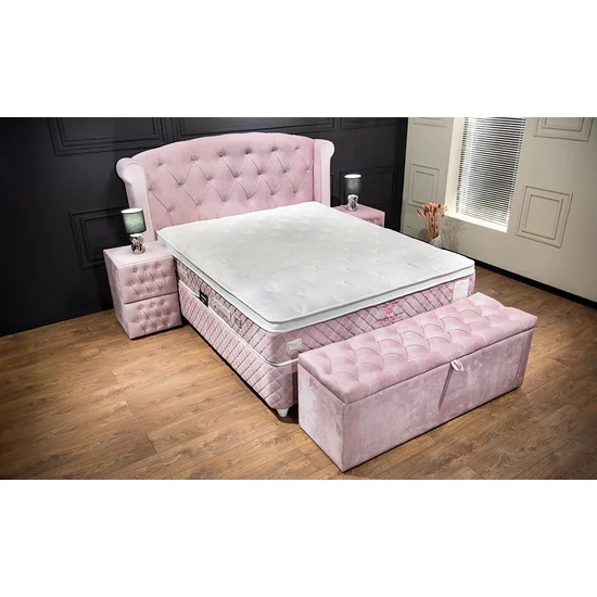 Patul Visco are un aspect frumos, delicat cu un design elegant si este realizat cu precizie. Pe langa utilitatea de a va aseza pe taburet sau bancuta la capatul patului, beneficiaza deasemenea de un spatiu generos de depozitare prin lada pentru lenjerie rabatabila, care are amortizoare pentru a preveni accidentele.