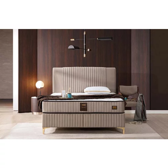 Pat Bari, ladă depozitare rabatabilă, amortizoare integrate, design elegant, stofă catifelată premium, 160x200 cm, Crem