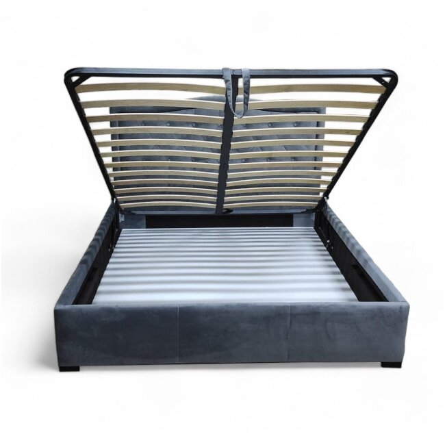 Pat Lyon, tăblie capitonată, ladă depozitare, tapițerie stofă premium, 140x200 cm, Gri