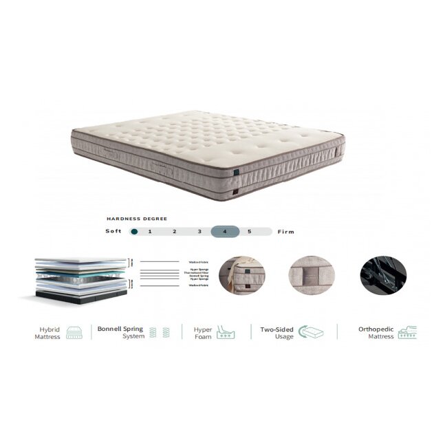 * Sistemul de arcuri durabil de tip Bonnel Spring oferă un suport ferm pentru corp și ajută la ameliorarea durerii de spate prin asigurarea unui confort optim.