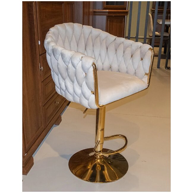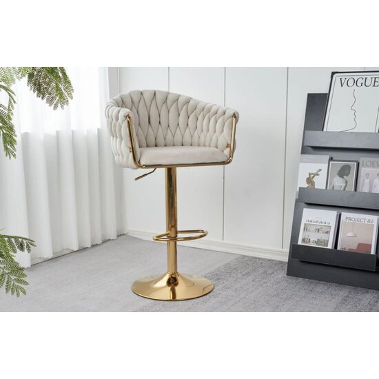 Scaun bar Pretty, tapițerie catifea luxoasă, reglaj înălțime, bază metalică aurie, 45x49x103 cm, Bej