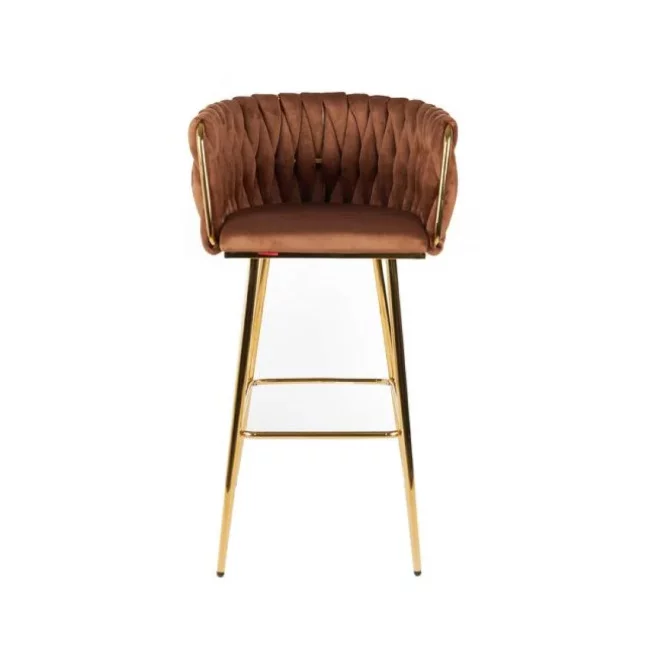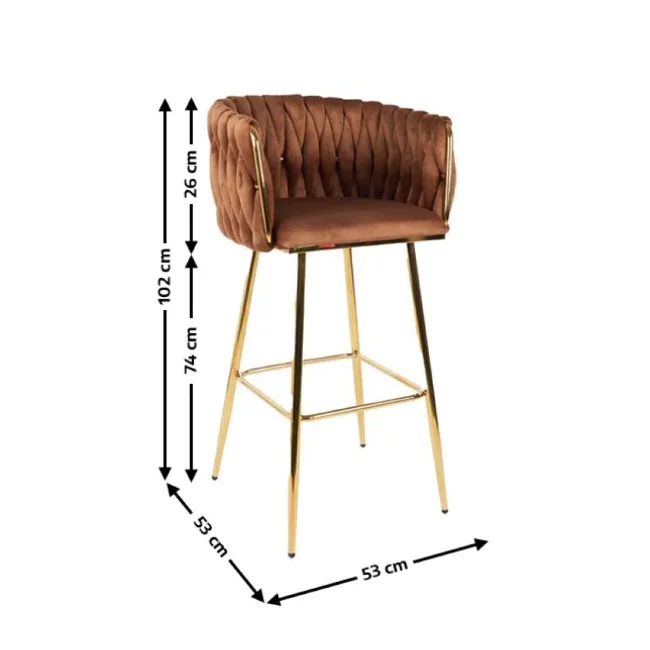 Scaun bar Sun, design rafinat, tapițerie catifea premium, picioare metalice aurii, 53x55x102 cm, Maro