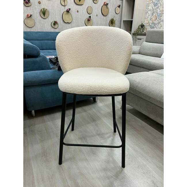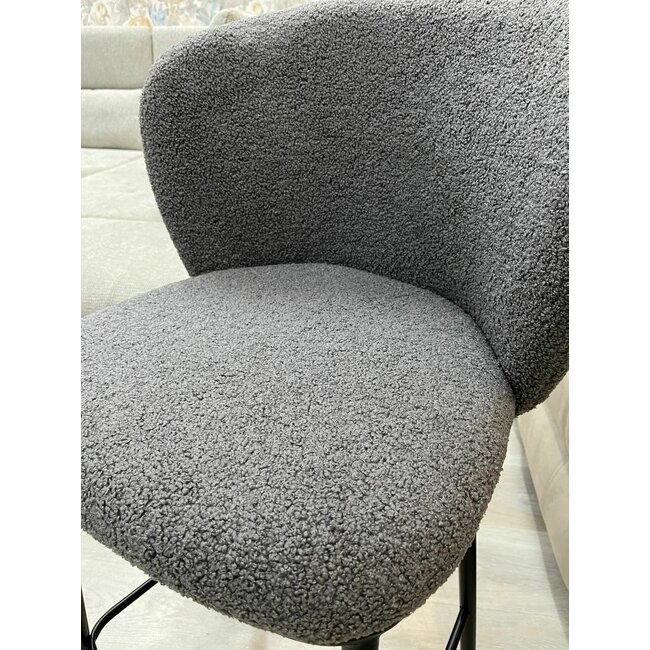 Scaunul de bar este realizat cu grija la detalii avand picior de metal si un sezut din material bouclé.