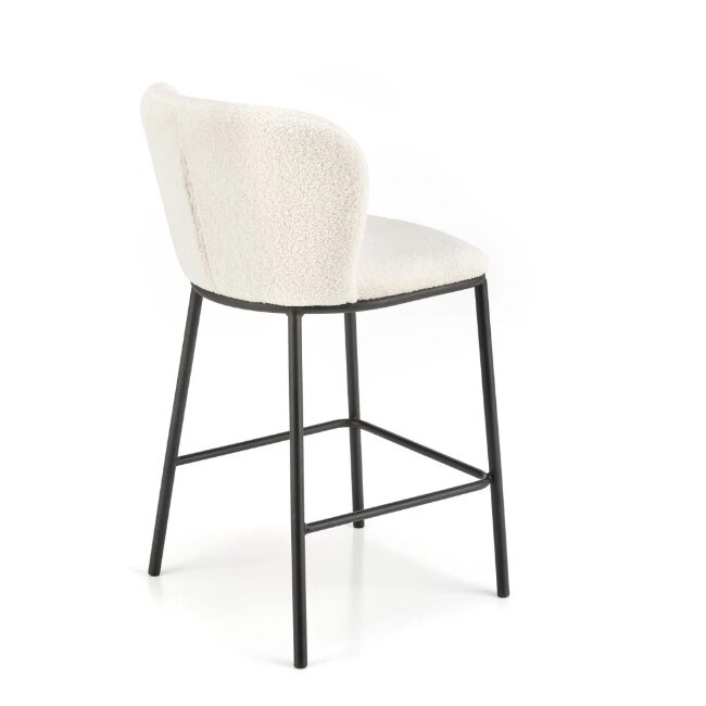 Scaun de bar Teddy, șezut din material bouclé, picior metalic rezistent, design modern, crem/gri