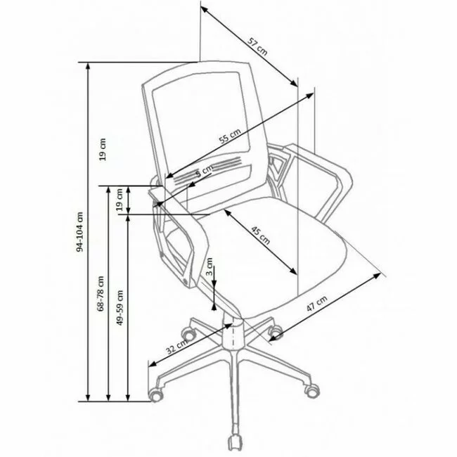 Mecanism ASCOT TILT, Dimensiuni: 55/57 / 94-104 / 49-59 cm, material: pânză / plasă perforată, culoare: negru / alb / gri
