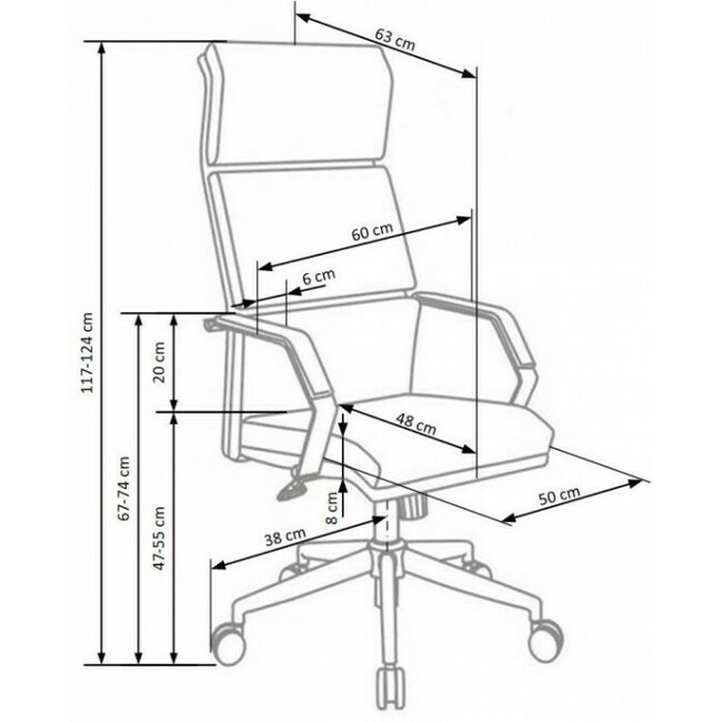 Scaun Costa birou cu mecanism TILT, piele ecologică, 60x63x117-124 cm, alb-negru