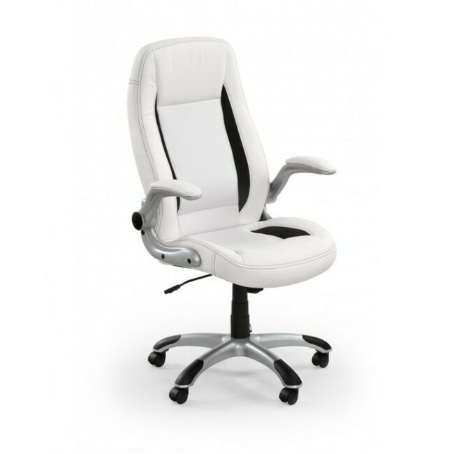 Scaun Saturn, mecanism TILT, piele ecologică perforată, 65x70x122-132 cm, alb