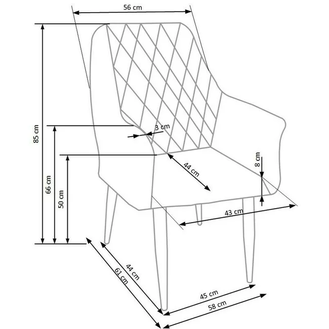 Scaun K287, șezut confortabil și spătar curbat, material textil, 58x61x85 cm, gri
