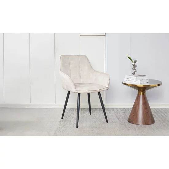 Scaun Betty, tapițerie stofă catifelată, spătar ergonomic curbat, picioare metalice, 61x59x90 cm, Bej