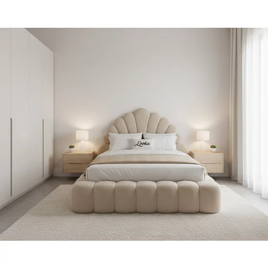 Pat tapițat cu Saltea Gratis, Looka 200x200 cm crem cu somieră rabatabilă, ladă depozitare