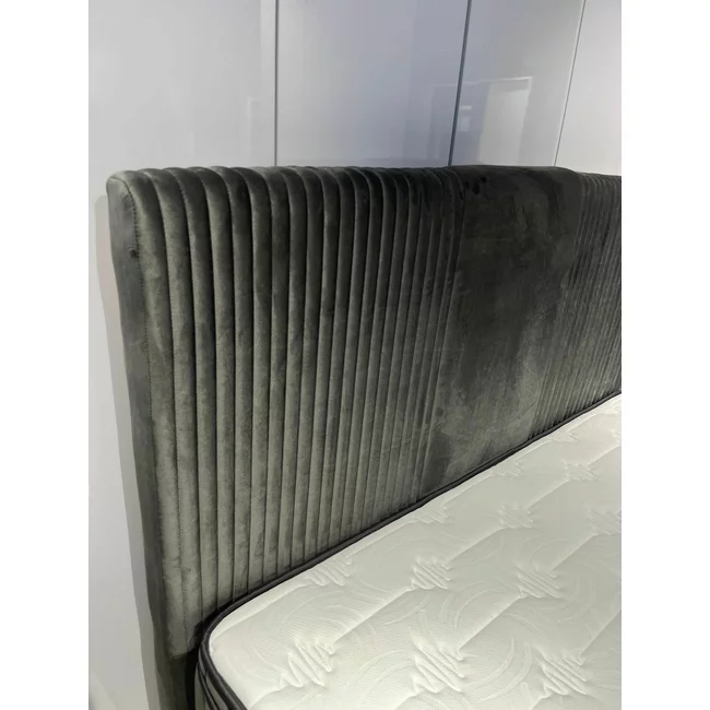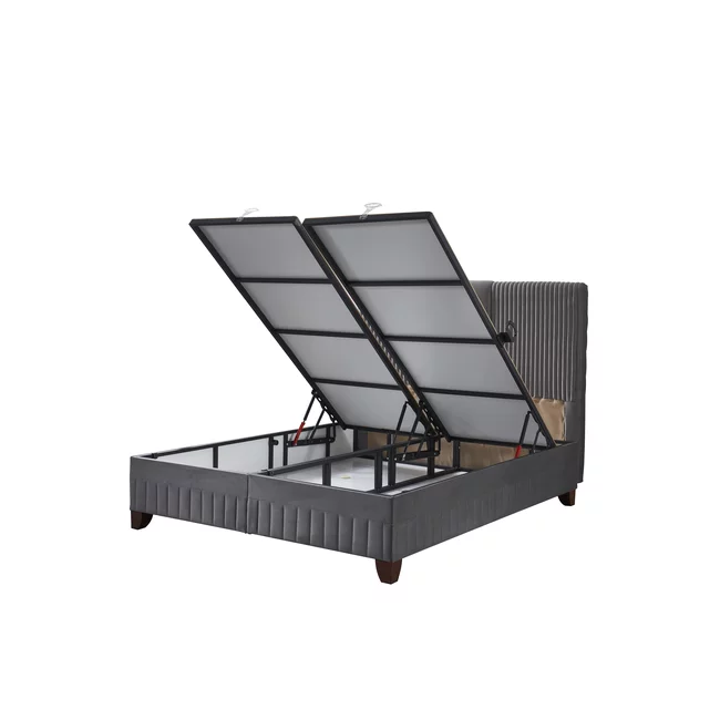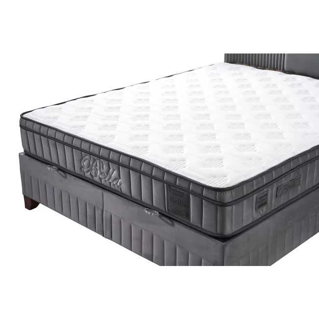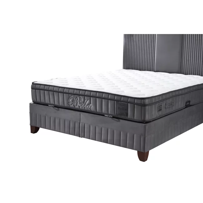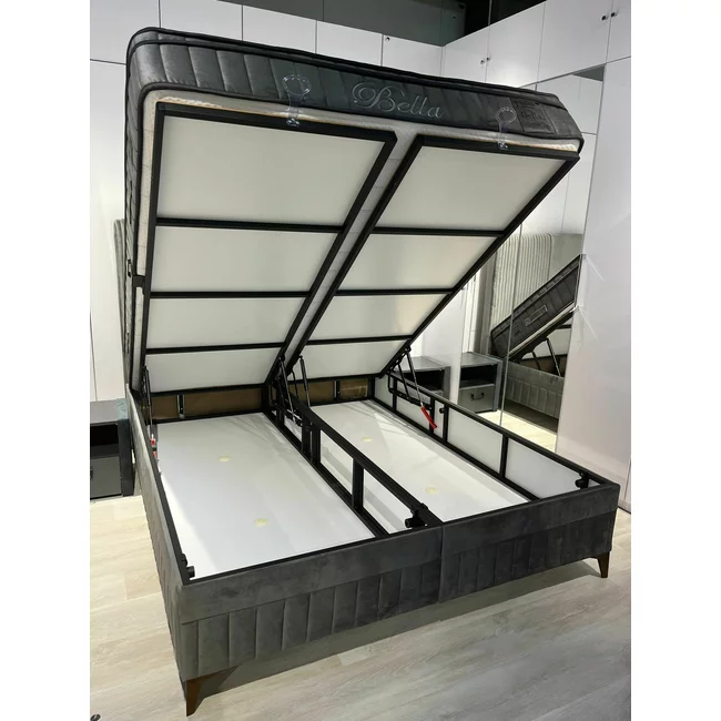 Set Pat Tapițat Bella + Saltea, ladă depozitare, tapițerie catifea premium, structură metal + PAL, 160x200 cm, Gri