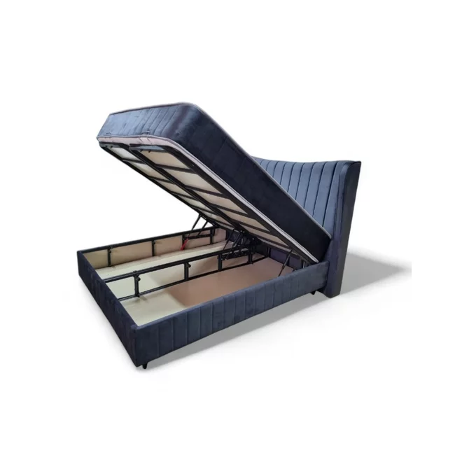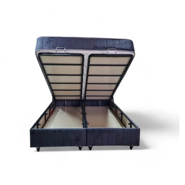 Set Pat + Saltea Savurani, structură rezistentă, ladă depozitare generoasă, tapițerie catifelată, 160x200 cm, Gri