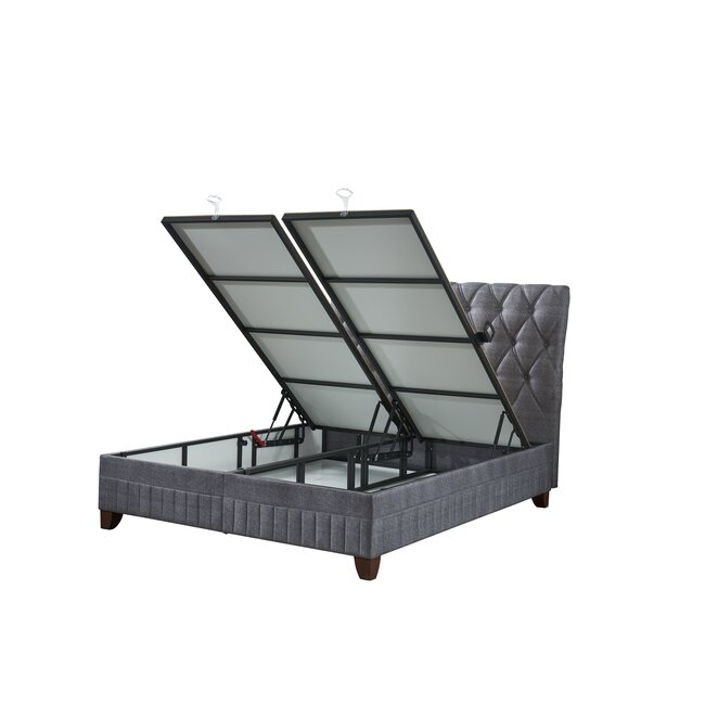 Proiecta cu lada de depozitare, accesibilă prin intermediul unei somiere rabatabile, acest pat oferă soluții inteligente pentru organizarea și păstrarea lucrurilor tale.