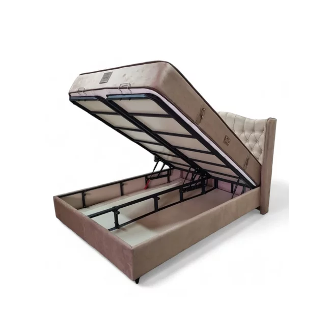 Set Pat + Saltea IMGI, structură robustă, ladă depozitare integrată, tapițerie premium, 160x200 cm, Crem