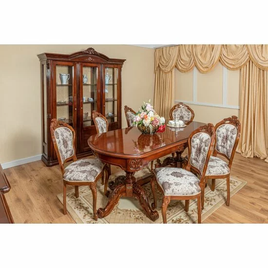 Fiecare piesă este sculptată și finisată de mâini maeștre, îmbinând tradiția artizanatului cu estetica modernă. Designul clasic, imbogățit cu detalii fine, transformă fiecare spațiu într-un loc de poveste, plin de căldură și rafinament.