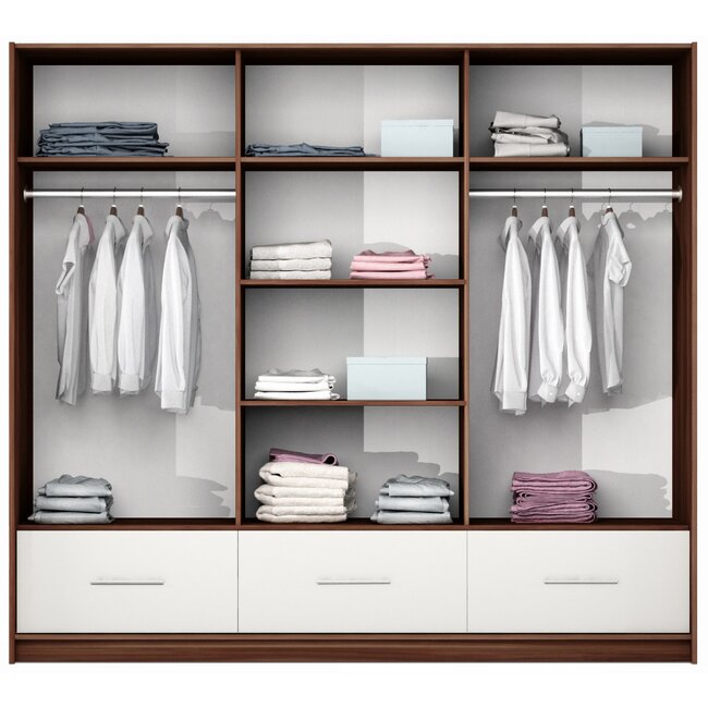 Interiorul are spatiu pentru umerase, rafturi si trei sertare, oferind posibilitatea de organizare a hainelor.