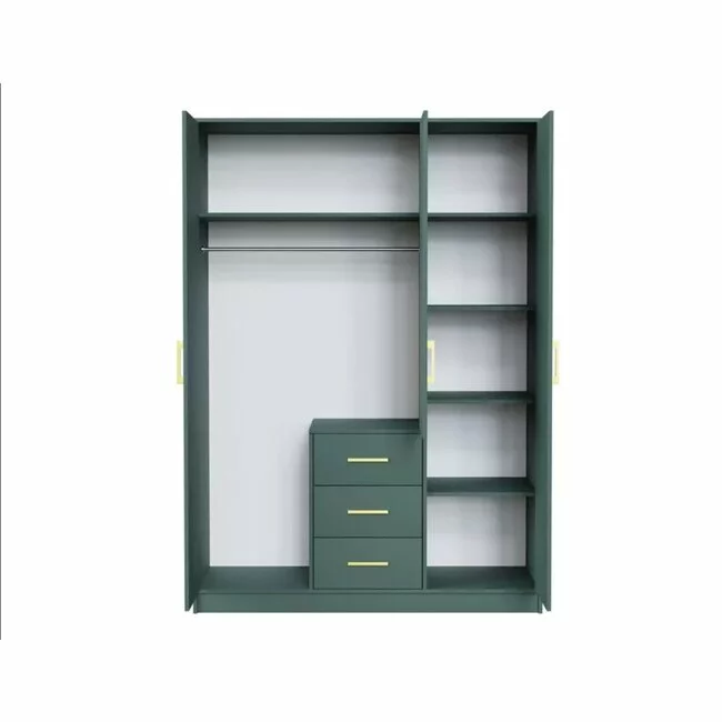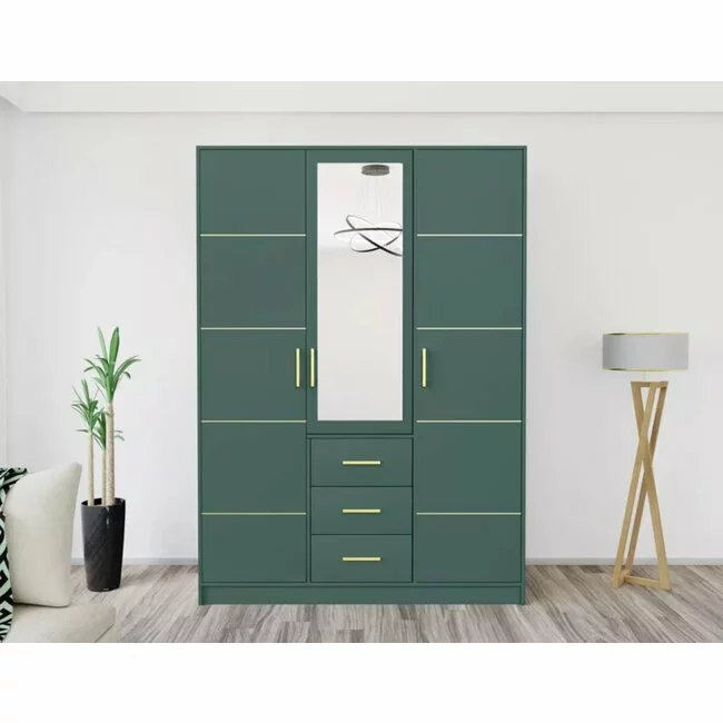 Dulap Bali 2D3 cu oglindă, bară haine, 3 sertare, PAL laminat, 147x58x200 cm, verde