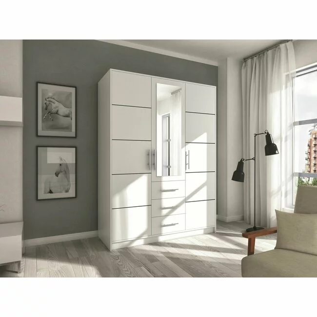 Dulap Bali D3 cu polite si bara umerase din PAL, 147x58x200 cm, alb