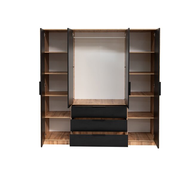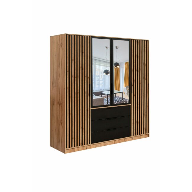 Dulap Bali D4 Lux, oglindă, bară haine, 4 sertare, PAL laminat, 196x58x200 cm, wotan/cazarny