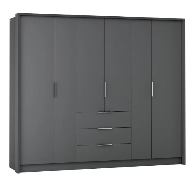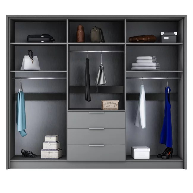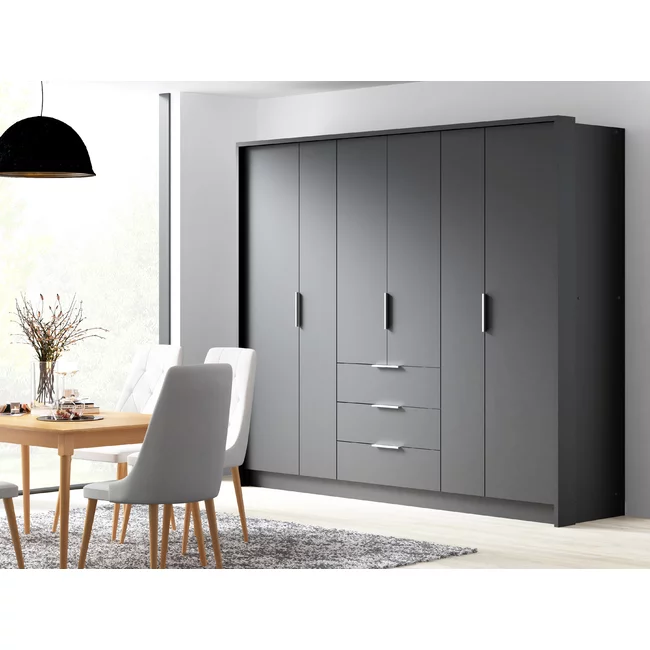 Dulap Bangkok cu uși glisante, structură solidă și PAL melaminat, 255x65x217 cm, grafit