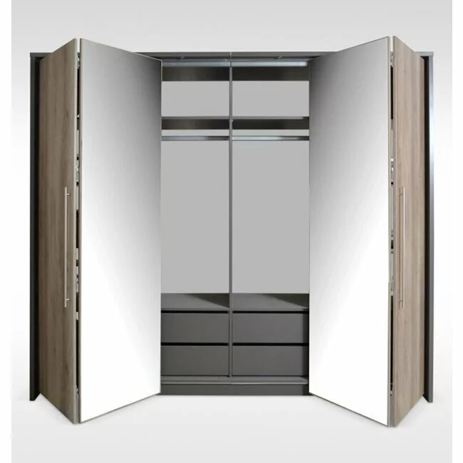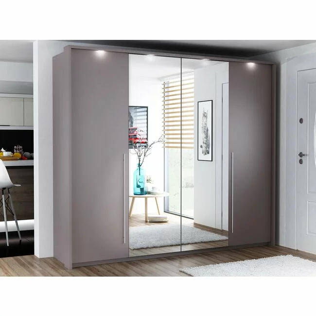 Dulap Brema cu usi glisante si oglinda din PAL, 2,55x0,65x2,19 m, lava