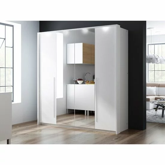 Dulap Brema cu usi glisante si oglinda din PAL, 2,09x0,65x2,19 m, alb