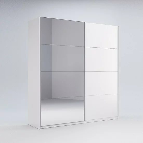 Dulap Family, cu uși culisante și oglindă, PAL/MDF, 150x61.5x211.5 cm, Alb
