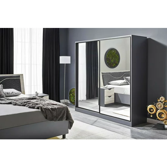 Dulap Happy, Cu 2 Uși Glisante, PAL Melaminat, 150x210 cm, Grafit