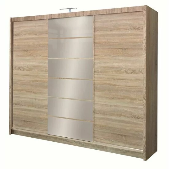 Dulap Malibu dulap cu usi culisante din pal melaminat cu feronerie de calitate și compartimentare practică, 250x61x215 cm, Sonoma
