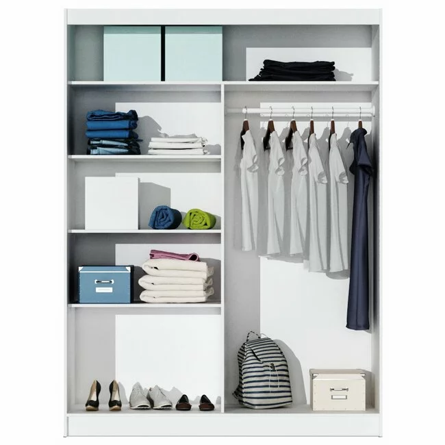 Dulap Paris dulap cu usi culisante din pal melaminat cu feronerie de calitate și compartimentare practică, 160x61x215 cm, alb