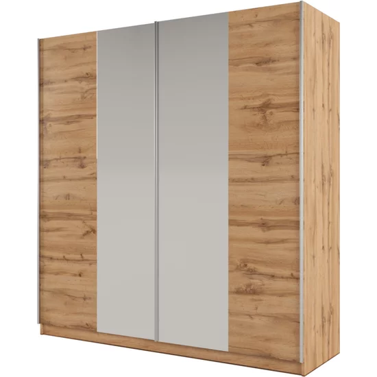 Dulap Praga cu uși glisante și carcasă din PAL melaminat, 200x565x210 cm, stejar
