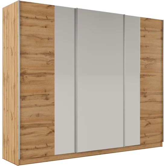 Dulap Praga cu finisaj cald din stejar și sistem de închidere glisant, 250x65x210 cm, stejar