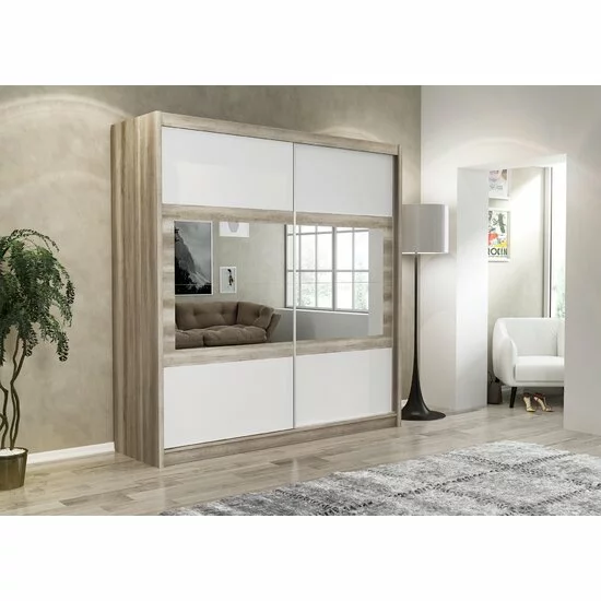 Dulap Salwador dulap cu usi culisante din pal melaminat cu feronerie de calitate și compartimentare practică, 203x61x215 cm, alb