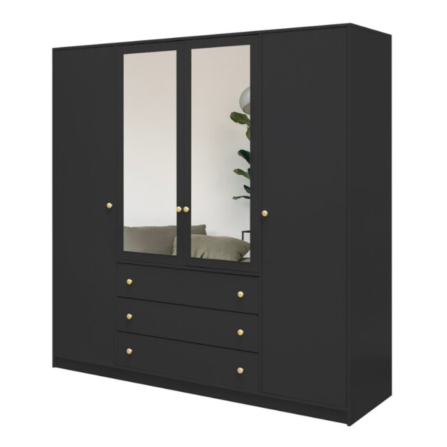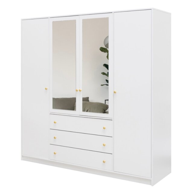 Dulap Siena D4, spațiu generos cu patru uși și oglinzi, PAL melaminat, 196x58x200 cm, alb