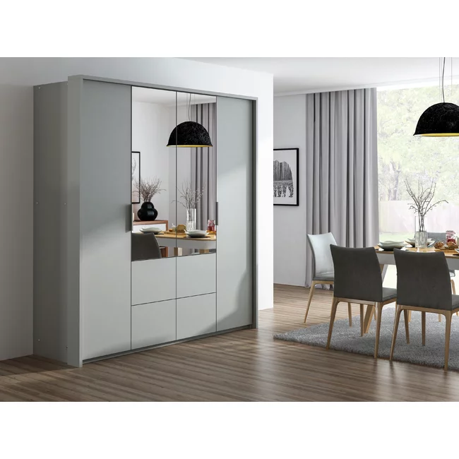 Dulap Wieden cu uși glisante și feronerie premium, PAL melaminat, 208x65x217 cm, alb