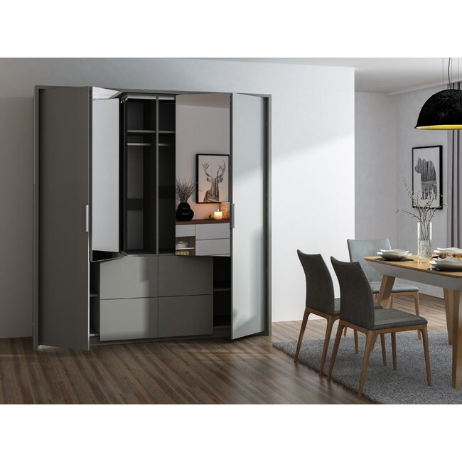 Dulap Wieden cu compartimentare practică și PAL melaminat, 208x65x217 cm, grafit