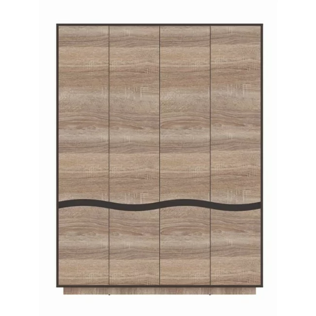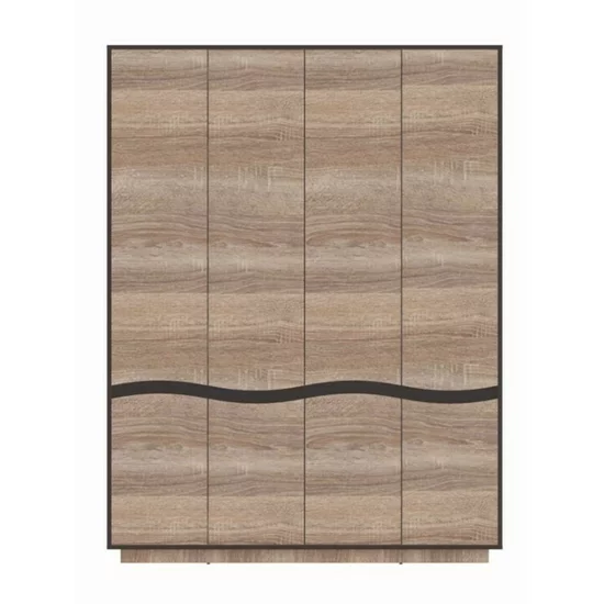 Dulap Geneva 4D, design modern cu uși glisante și spațiu generos de depozitare, PAL melaminat, 156x206x50 cm, Sonoma Trufa și Wenge