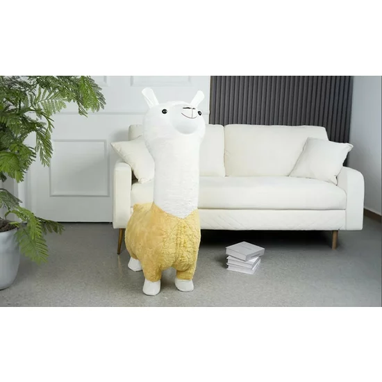 Taburet copii Alpaca, design jucăuș cu tapițerie moale, 70x40x112 cm, galben